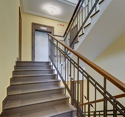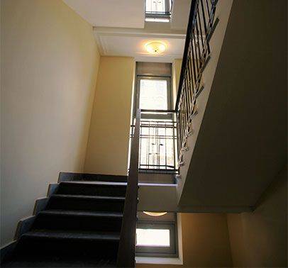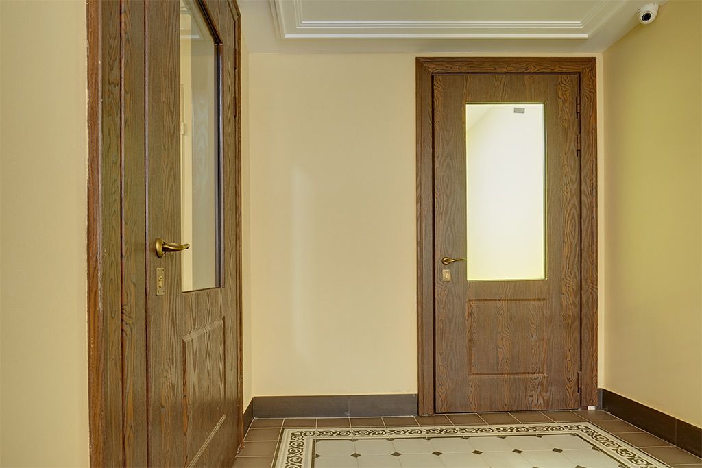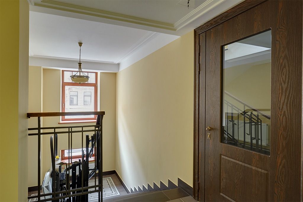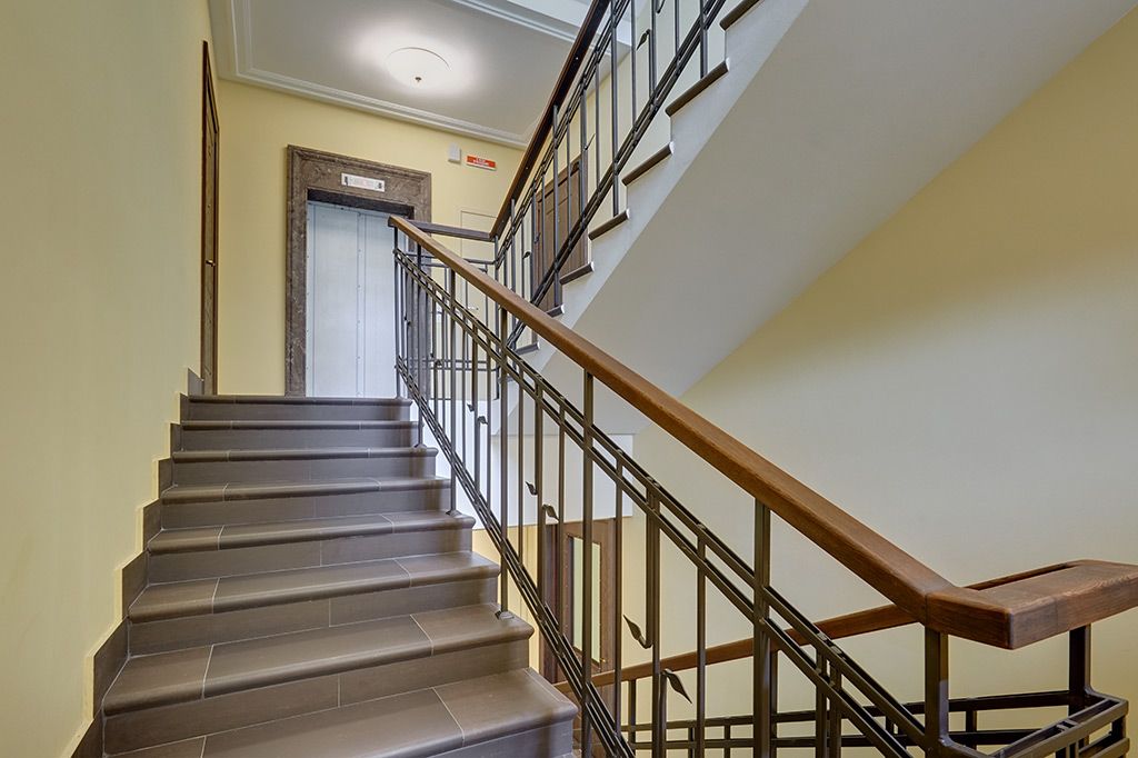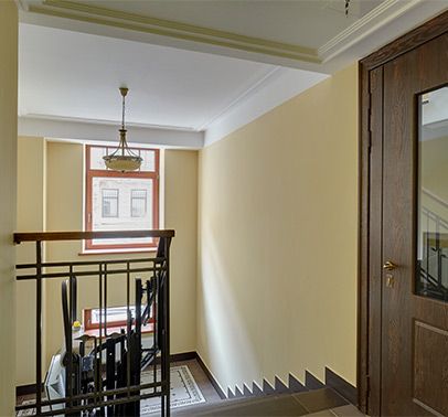 Оформлению всех трех парадных и холлов на этажах уделено особое внимание. Декоративная штукатурка, лепнина, ковка, отделка деревом, керамическая плитка производства Италии, и элегантные светильники подчеркивают уровень качества дома.